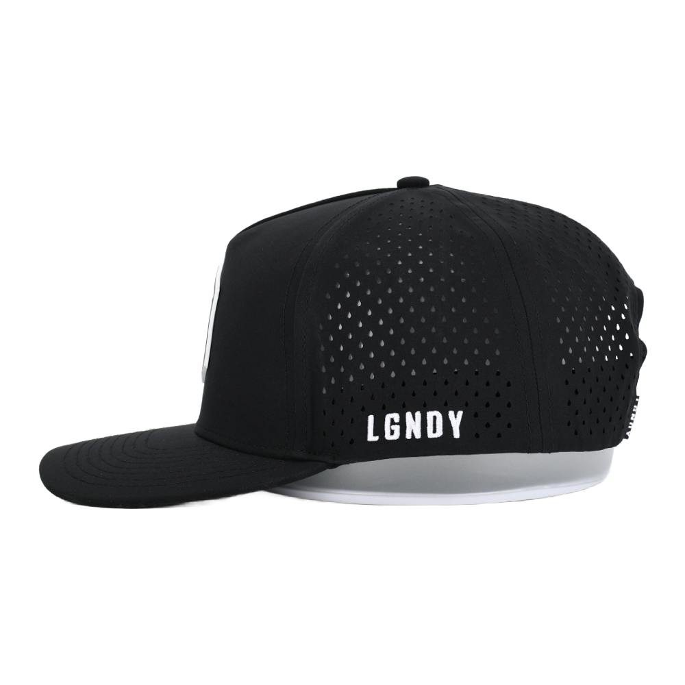 The all-white "Woods 1.0" hat has gone to the dark side! Our hats are designed to be unique, water friendly, lightweight, moisture wicking and breathable. Great for golf and casual wear. This snapback is one size fits most.
